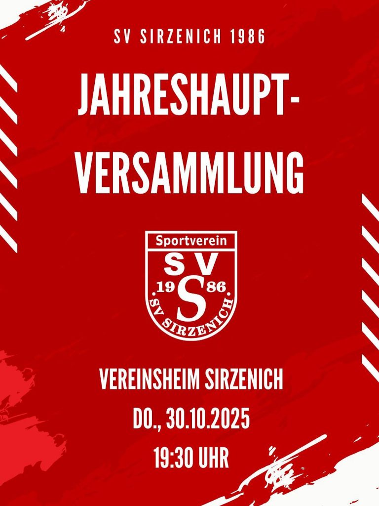 Wir laden alle Mitglieder zur diesjährigen Jahreshauptversammlung am Donnerstag, 30.10.2025 um 19:30 Uhr im Clubhaus in Sirzenich ein.